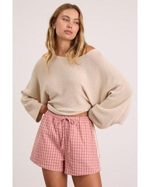 Kirra Gingham Drawstring Shorts - Pink