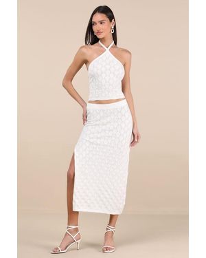 Daisy Pointelle Knit Midi Skirt - Natural