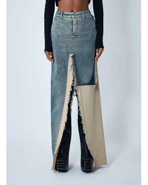 Denim Distressed Maxi Skirt - Blue