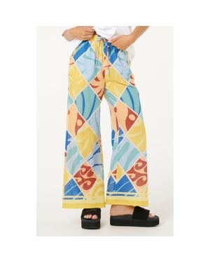 Neon Isles Tie Waist Wide Leg Pants - Blue