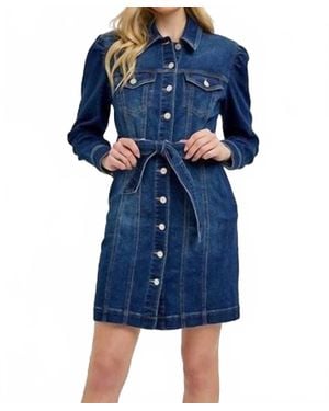 Puffed Sleeve Denim Dress - Blue
