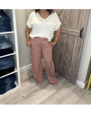 Jeans High Rise Wide Leg Tencel Pocket Cargo Pants - Multicolor