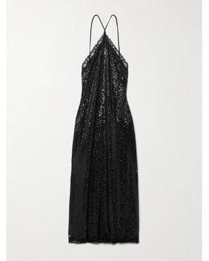 Harlan Lace-Trimmed Sequined Tulle Halterneck Midi Dress - Black