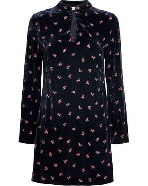Velvet Floral Calla Mini Dress - Blue