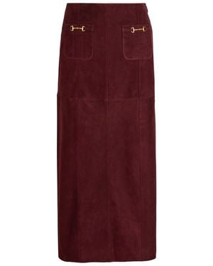 Edwina Horsebit-Embellished Suede Midi Skirt - Red