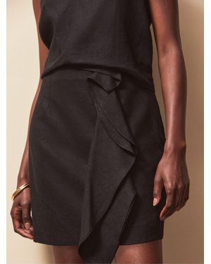 Frill Detail Linen Blend Skirt - Brown
