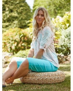 Stretch Knee Length Pedal Pusher Shorts - Blue
