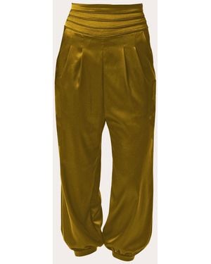 Avenoir Cropped Pleated Stretch Silk Pants - Green