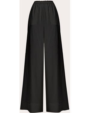 Lourdes Stretch Silk Wide-Leg Pants - Black