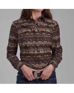 Girl's Horizontal Print Design Aztec Stripe Print Shirt - Blue