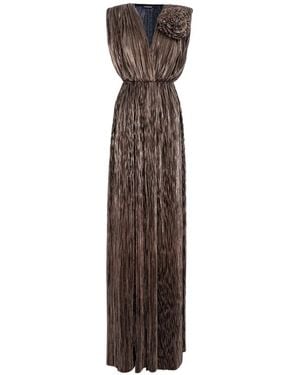 Sicily Maxi Pleated Lurex Satin Dress - Brown