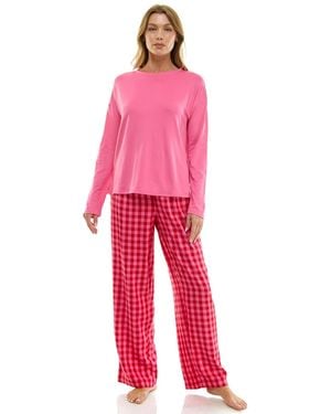 Printed Open Leg Contrast Waistband Flannel Pants - Red