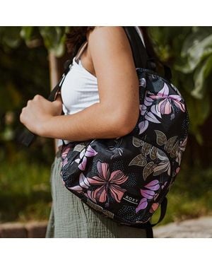Roxy is the sister label to Quicksilver, a board sports brand aimed at active women. The line was launched in 1990 with a range of surf and snow clothing and has developed into numerous different lines, including watches, footwear, homewares and perfumes. The brand has a line of backpacks that blends practical style with fashion-forward looks. The are printed backpacks in a rainbow of colors, many of which also bear the distinctive Roxy logo lettering, as well as more subtle styles in simple blues and beiges. Canvas rucksacks with leather tassels veer far from the sporty aesthetic, as do the wide eyed and drifter style designs.