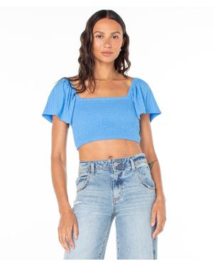 Sandy Beach Smocked Twist Reversible Crop Top - Blue