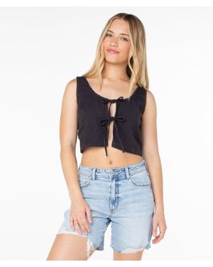 Kayla Sleeveless Cotton Tie Front Top - Blue