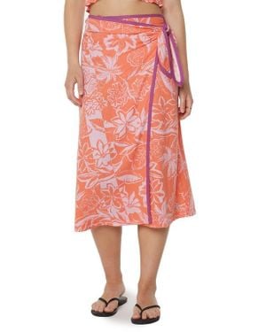 Palma Floral Wrap Skirt - Red