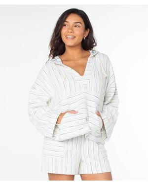 Rich Coast Striped Poncho - White
