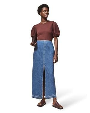 Denim Split Front Maxi Skirt - Blue