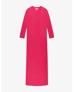 V-Neck Knitted Cotton-Blend Midaxi Sweater Dress - Pink