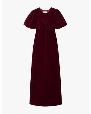 Jessie Puff-Sleeve Velvet Maxi Dress - Red