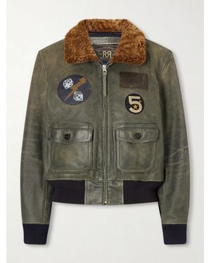 Harper Plush-Trimmed Appliquéd Leather Bomber Jacket - Green