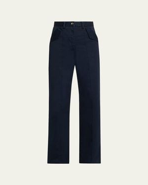 The Odette Pintuck Straight-Leg Sateen Pants - Blue