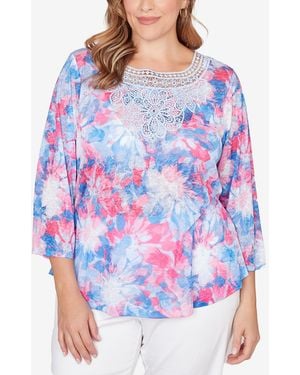 Plus Size Floral Medallion Knit Top - Blue