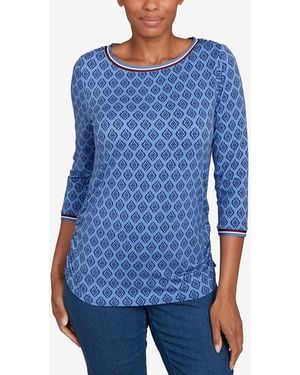 Petite Stripe Tipped Monotone Textured Top - Blue