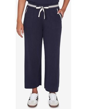 Petite Lace Trim Pull On Silky Tech Ankle Pants - Blue