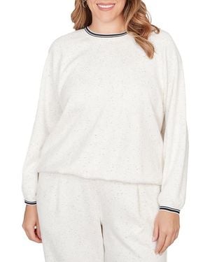 Plus Size Bubble Hem Fleck Knit Pullover Top - White
