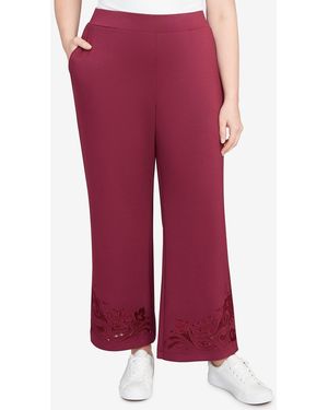 Plus Size Wide Leg Floral Cutout Pants - Red