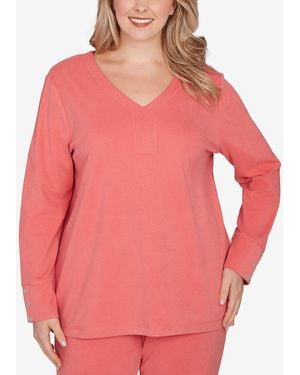 Plus Size Luxe Rib V-neck Button Accent Knit Top - Pink