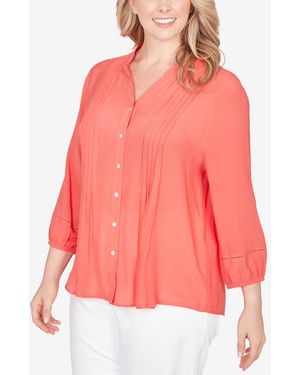 Plus Size Solid Silky Slub Pleated Button Front Top - Pink