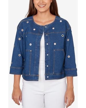 Petite Grommet Detail Stretch Denim Jacket - Blue
