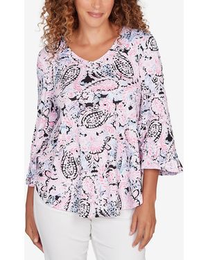 Petite Paisley Ruffle Sleeve Knit Top - Multicolor