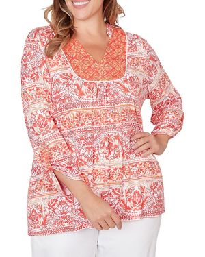 Plus Size Paisley Silky Gauze Button Front Top - Red
