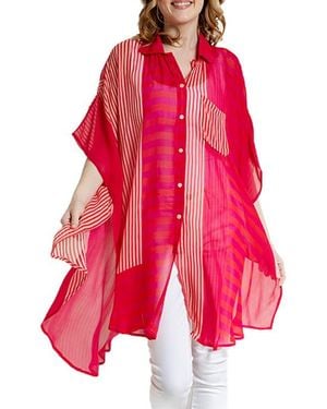 Sheer Oversize Stripe Cover-Up Shirt - Red