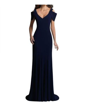 Cold-Shoulder V-Neck Evening Gown - Blue