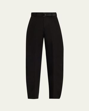 Double-Faced Silk-Cotton Barrel-Leg Ankle Pants - Black