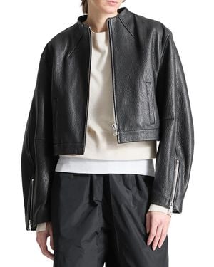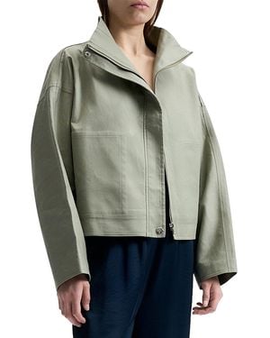 Collarless Leather Jacket - Gray