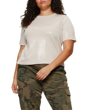 Sparkle Short Sleeve Sequin Sweater - Gray