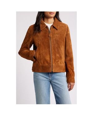 Roughout Cowhide Suede Trucker Jacket - Orange