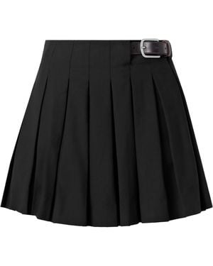 Adeline Belted Pleated Crepe Mini Skirt - Black