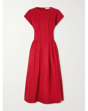 Imogen Smocked Pleated Ramie Midi Dress - Red