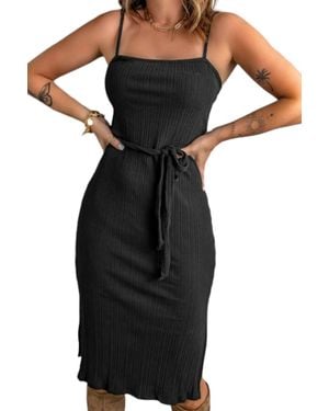Ribbed Lace-Up Spaghetti Strap Mini Dress - Black