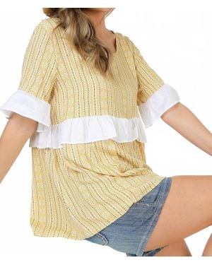 Short Sleeve Round Neck Stripe Tunic Top - Yellow