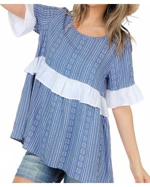 Short Sleeve Round Neck Stripe Tunic Top - Blue