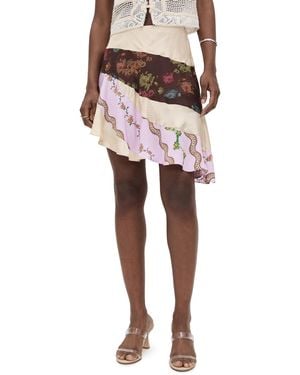 Zoe Patchwork Print Satin Skirt With Sash - Brown