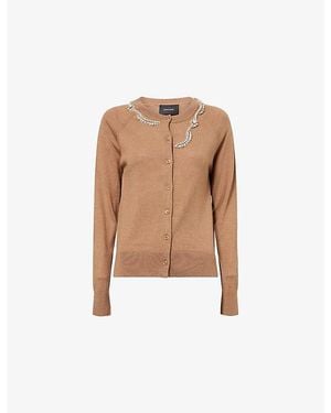Discover the artful sophistication of Simone Rocha cardigans on Lyst. Each piece is a testament to meticulous craftsmanship, featuring ornate crystal embellishments, delicate beading, and scallop detailing. These cardigans are not just warm layers but are thoughtfully designed with luxurious fabrics like merino wool, alpaca blends, and silk, making them perfect for those who appreciate timeless elegance and quality. Available in a range of colors, from classic black to vibrant blues, and appealing metallics, Simone Rocha's knitwear line offers cropped to traditional lengths, ensuring a flattering fit for an array of styles. Elevate your wardrobe with these exquisite cardigans, which masterfully combine practicality with high-fashion appeal.