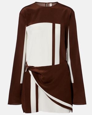 Printed Silk Satin Minidress - Brown